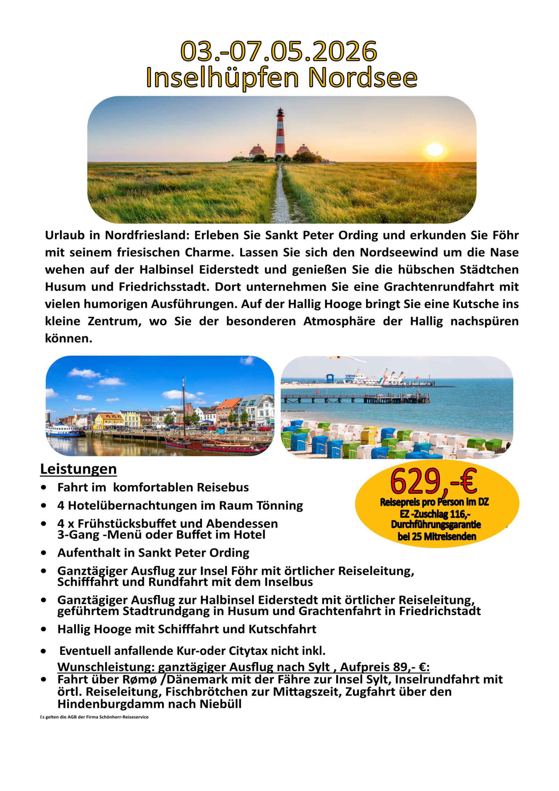 • Ganztägiger Ausflug zur Insel Föhr mit örtlicher Reiseleitung, Schifffahrt und Rundfahrt mit dem Inselbus